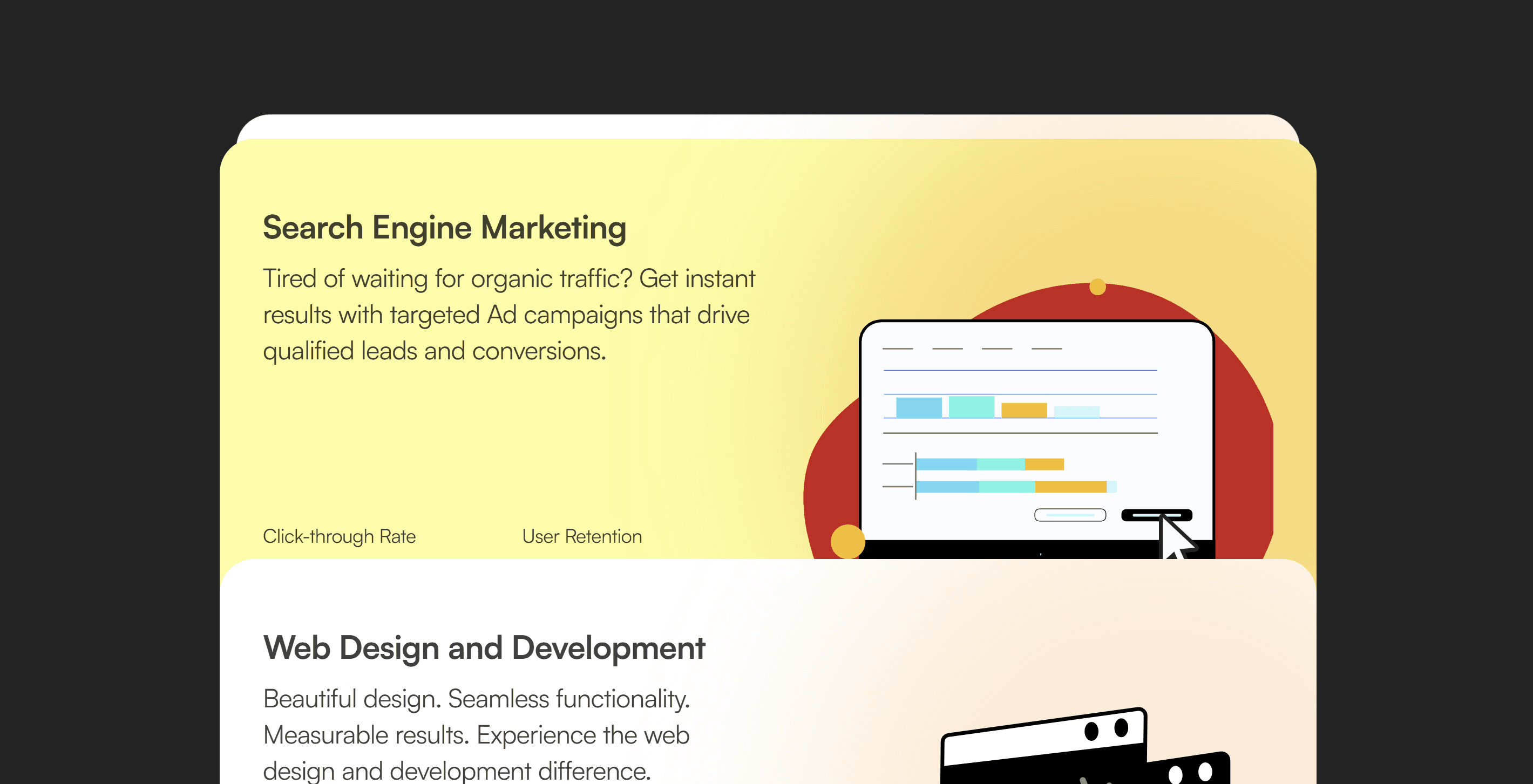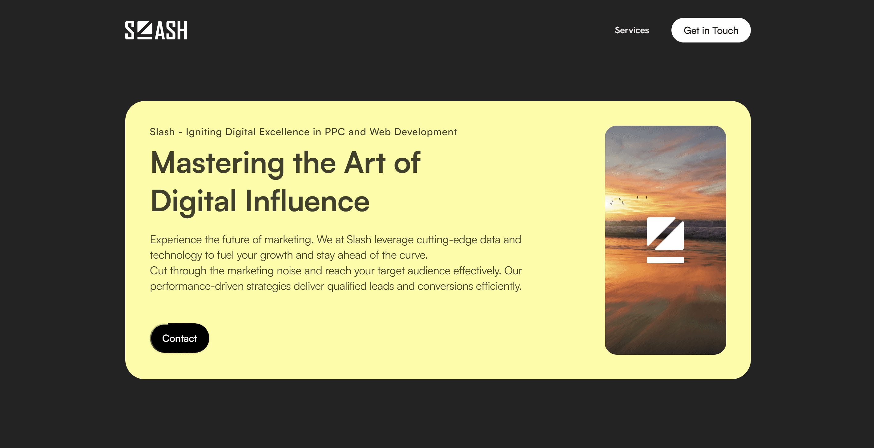 Designed and developed a cutting-edge single-page website for Slash, a leading marketing agency, embodying a clean and minimalist aesthetic. Developed using Framer, the website showcases Slash's services, offers a section for booking meetings, displays client testimonials, and showcases the client portfolio. The distinctive black and yellow palette, paired with captivating text animations, elevates the website's aesthetic appeal and user interaction.
